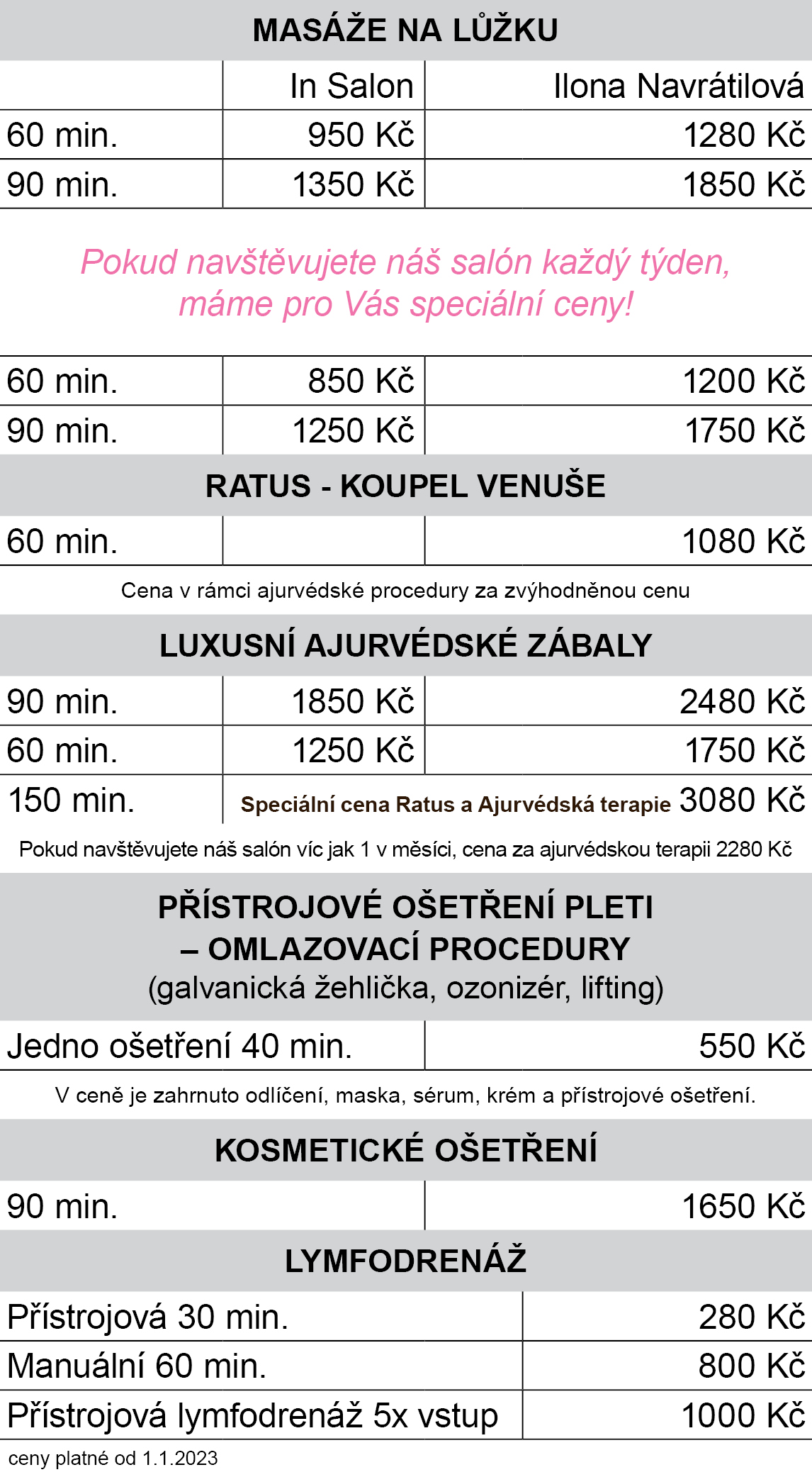 Za neomluvené zrušení jakékoliv služby později než 24 hod. před termínem účtujeme storno poplatek 400 Kč/hod., který odečteme při vaši další návštěvě.